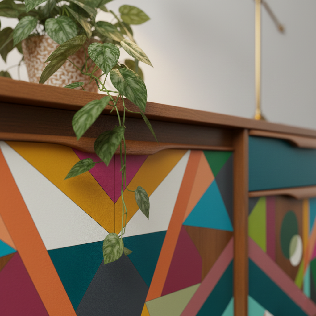 Hand-Painted MCM Pop Art Sideboard – 60" Bold Abstract Credenza
