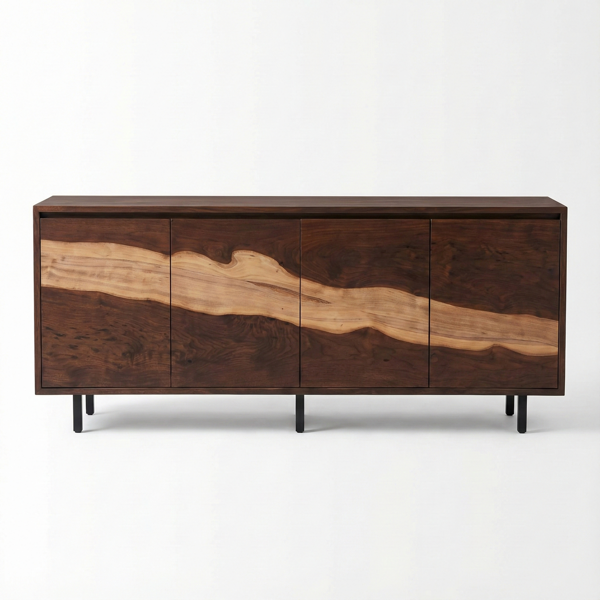 Handcrafted Solid Walnut Sideboard – Tall Natural Wood Storage Cabinet